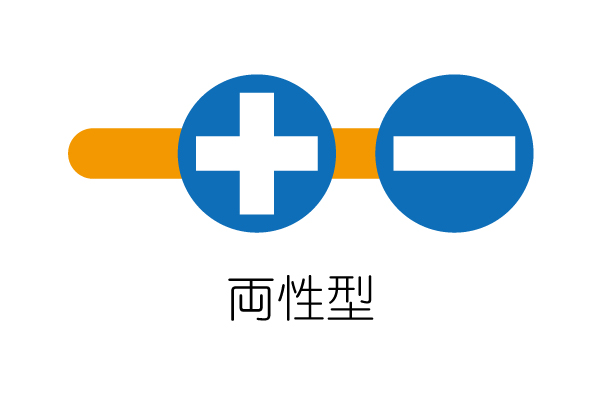 ③ プラスとマイナスの両方を持っているものをアンホ型(両性型)