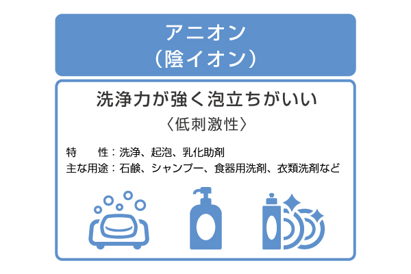 シャンプーなど洗浄系に使われるアニオン型界面活性剤の特徴は?