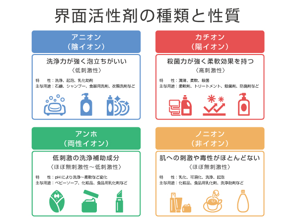 ひとくちに界面活性剤といっても使い方や特徴も様々。