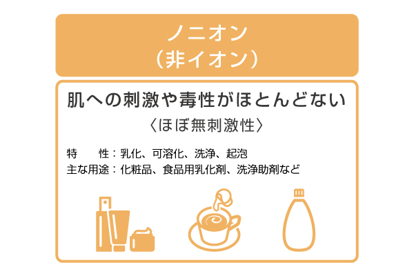 用途が多岐にわたり、肌への刺激が少ないノニオン型界面活性剤の特徴は?