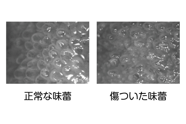 界面活性剤の刺激がお口の中の味を感じる器官「味蕾」を傷つけているせいで味が変わってしまうのです。