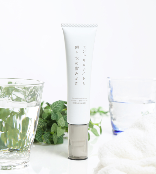 モンモリロナイトがたっぷり配合された「モンモリロナイトと銀と水の歯みがき」。