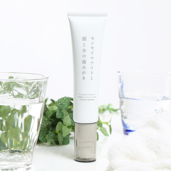 体にやさしいモンモリロナイトのちからで汚れを落とし、お口の中を潤す。その上嫌な臭いまでくるみ取ってくれる「モンモリロナイトと銀と水の歯みがき」。