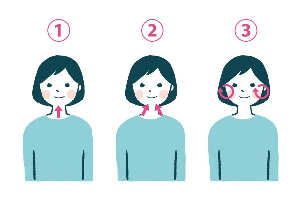 ② 顎の下の部分のくぼみを顎の骨にそって10回ほど