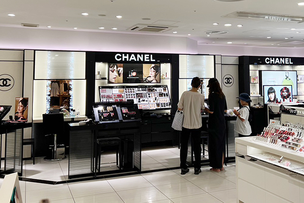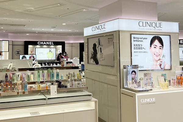 隣にはシャネルやクリニークなどのデパコスが並んでおります。