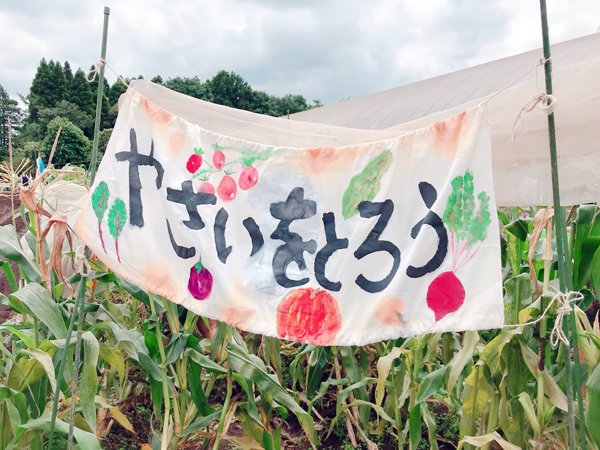泥プールの横ではなんと収穫フリーの野菜が!