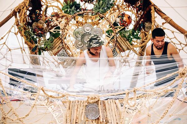 泥プールの目の前、DJブースの装飾もまさに超オーガニック!