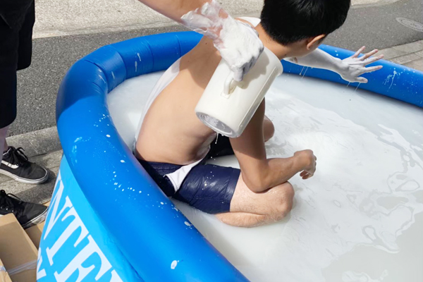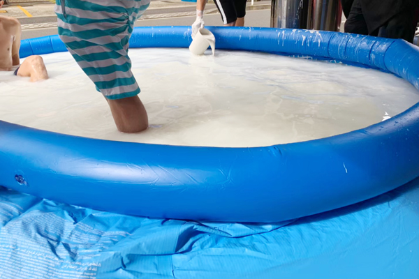 関内で行われる「吉田まちじゅうビアガーデン」の一角で催される、DJの音楽を聴きながらモンモリロナイトのプールに浸かるというイベントです。