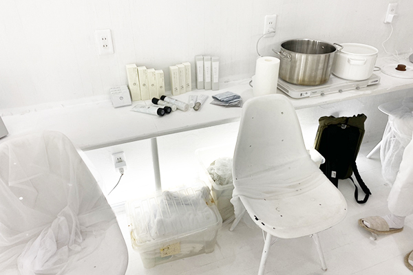 真っ白なモンモリロナイトのクリームにお湯を入れて足湯の出来上がり。