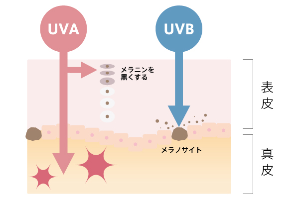 UV-AとUV-Bをまとめると2種類の紫外線はお肌にもたらす影響が違います。