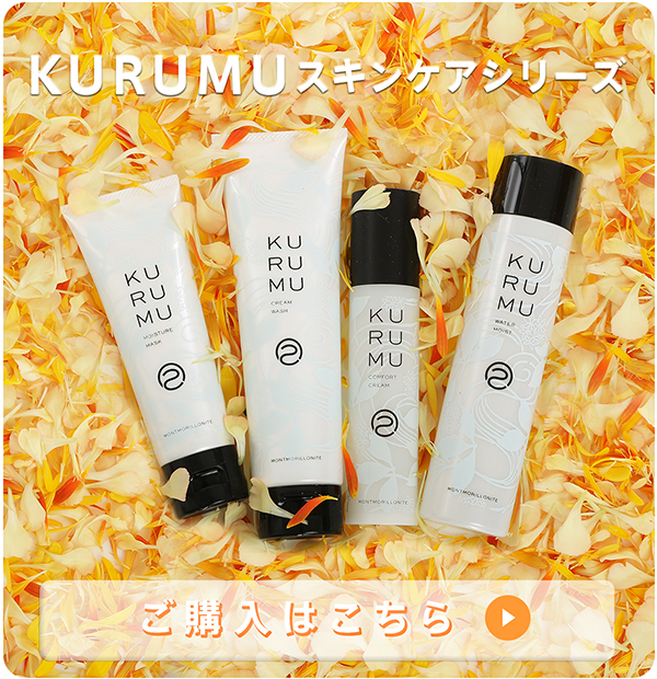モンモリロナイトがたっぷりと配合されたKURUMUのスキンケアシリーズ。