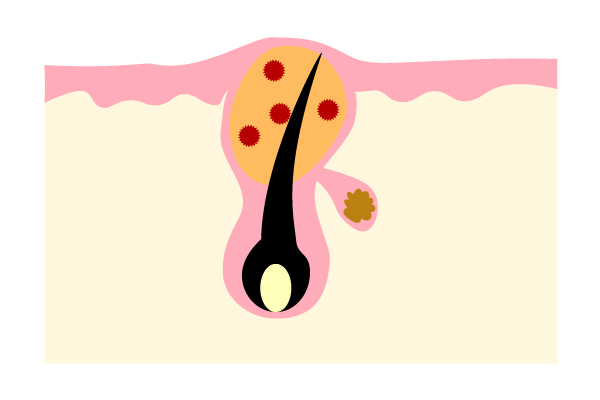 ③ 増えたアクネ菌が暴れはじめ、炎症を起こします。